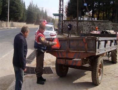Remorkunda reflektör takılı olmayan traktörlerin karayollarında seyrine izin vermeyen jandarma trafik timleri elektrik donanımı eksik olan sürücüleri uyarmayı da ihmal etmiyor.