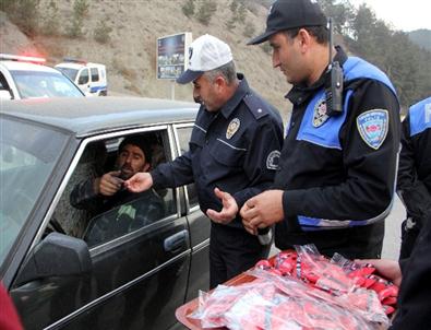 Uygulamada sürücüler ve yolculara emniyet kemeri kullanımı konusunda uyarıcı bilgiler verilerek, polis ekipleri tarafından proje kapsamında hazırlanan emniyet kemeri logolu oto kokuları ve anahtarlıklar dağıtıldı.
