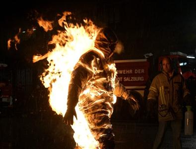 Avusturyalı dublör Joe Tödtling, 5 dakika 41 saniye boyunca vücudunu saran alevlere dayanarak dünya rekoru kırdı.