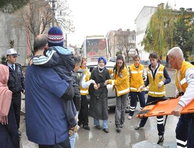 Yaralı kadın sürücü sağlık ekiplerinin ilk müdahalesinin ardından İnegöl Devlet Hastanesi'ne kaldırıldı. Şans eseri yaralanmayan 2 yaşındaki Ahmet K. ise, sağlık görevlisinin kucağında, şaşkın gözlerle annesine müdahale edilmesini izledi. Kadın sürücünün sağlık durumunun iyi olduğu bildirildi.