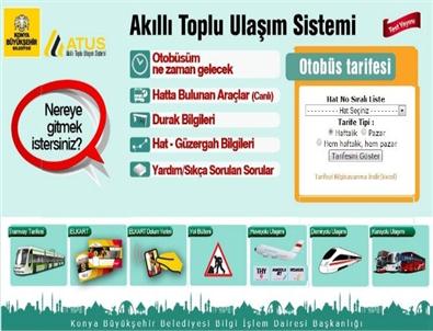 Vatandaşların toplu ulaşımı daha verimli, daha kolay kullanabilmesi ve duraklarda daha az beklemesi için tüm toplu ulaşım duraklarını “Akıllı Duraklara” dönüştürürken; ücretsiz kısa mesaj servisi, mobil uygulaması, karekod uygulaması, araç içi bilgilendirme ekranı ve web sitesi aracılığıyla “Otobüsüm Nerede?” sorusunu cevaplandırıyor. Konya Büyükşehir Belediyesi tarafından test uygulaması sürdürülen ATUS’un web uygulaması 3 ayda 2 milyondan fazla kullanıldı.