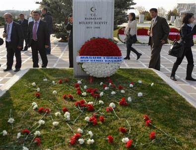 Merhum Başbakan Bülent Ecevit’in kabrine karanfil koyan partililer, daha sonra Devlet Mezarlığı’ndan ayrıldı.