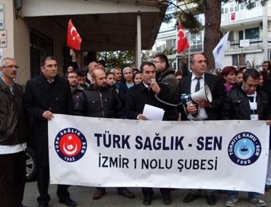Türk Sağlık Sen İzmir 1 Nolu Şube Başkanı Ahmet Doğruyol, sağlık çalışanlarının haklarının gaspedilmeye devam edildiğini ifade ederek, "Her fırsatta sağlık çalışanlarına yüklenenler, Sağlık Hizmetleri sunumu sayesinde siyasi rant elde etme çabasında olan siyasiler, söz konusu sağlık çalışanlarının haklarının verilmesi olunca maalesef, görmeleri gerekenleri görmüyor, duymaları gerekenleri duymuyorlar.