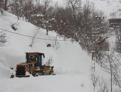 Hakkari İl Özel İdaresi karla mücadele ekibi olumsuz hava şartlarına rağmen köy ve mezra yollarını açmak için çalışmalarını aralıksız sürdürüyor.