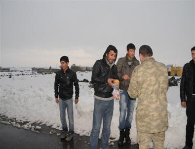 Öte yandan Mehmetçikler tarafından yolda mahsur kalan sürücü ve vatandaşlara, su, ekmek, çikolata ve kumanyadan oluşan gıda paketleri dağıtıldı