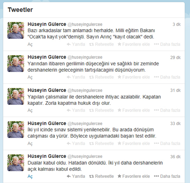* Yarından itibaren gerilimin düşeceğini ve sağlıklı bir zeminde dershanelerin geleceginin tartışılacagini düşünüyorum.
