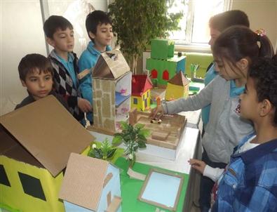 Aksaray’da ‘Hayalimdeki Ev’ isimli projeyi hayata geçiren minik öğrenciler proje kapsamında sergi açtı.