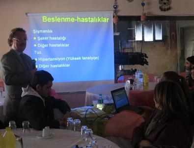 Tanrısev, Kemalpaşa’nın nazar boncuklarıyla ünlü Nazarköy köyünde gerçekleşen diyaliz hastaları ile yakınlarının katıldığı eğitim ve moral etkinliğinde doğru beslenme, aşırı tuz kullanımının oluşturduğu sakıncalar ile hijyen konularında bilgi verdi.