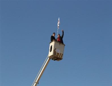 Eylem sırasında vinç sepetine çıkarak slogan atan işçiler “Ölmek istemiyoruz” diye haykırdı.