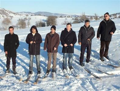 Başçiftlik Karaçam bölgesinde modern kayak yapmak için bir araya gelen 40 kişilik gruba katılan Başçiftlikliler de ipli board adını verdikleri kayaklarla karda kaymanın keyfini yaşadılar.