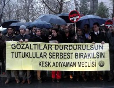 Demokrasi Parkı'nda düzenlenen basın açıklamasını okuyan Eğitim-Sen Adıyaman Şube Başkanı Hediye Kılınç, “AKP’nin ileri demokrasisi her gün yaşanan gözaltı ve tutuklama furyası ile devam ediyor. Ancak totaliter, faşizan rejimlerde rastlanabilecek, emek ve demokrasi düşmanlığı üzerine inşa edilen, bu sözde ileri demokrasiye muhalif her ses, farklı olan her düşünce baskı ve gözaltı uygulamaları ile susturulmak, sindirilmek isteniyor. Korku imparatorluğunun gölgesinin ulaşmadığı hiçbir alan bırakmamakta kararlı olan AKP, insanca bir yaşam ve demokratik bir ülke isteyen herkesi hedef tahtasına koymuştur. Öğrenciler, gazeteciler, belediye başkanları, milletvekilleri, avukatlar, kısaca iktidarı eleştiren herkes. Konfederasyonumuza ve bağlı sendikalarımıza yönelik baskıların sürekli olarak arttığı tüm kamuoyunca bilinmektedir. KESK olarak ne zaman haklarımızı, özgürlüklerimizi yok sayan düzenlemelere, saldırılara karşı emek ve demokrasi mücadelemizi yükseltsek karşımızda korku imparatorluğunun mimarı AKP dikilmektedir.