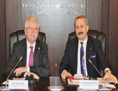 Ekonomi Bakanı Zafer Çağlayan, Bavyera Eyaleti Başbakan Yardımcısı ve Ekonomi, Altyapı, Ulaştırma ve Teknoloji Bakanı Martin Zeil ve beraberindeki heyeti bakanlıkta kabul etti. Alman heyet ile yapılacak toplantı öncesinde yaptığı açıklamada, Türkiye ile Almanya arasındaki ekonomik ilişkilerden rakamlar veren Bakan Çağlayan, “Diplomatik ilişkilerimiz oldukça eski. Diplomatik ilişkilerimizin 250. yılını kutluyoruz. Almanya’da 3 milyon Türk vatandaşımız yaşıyor. Almanya’daki Türklerin 70 bine yakın işletmeye sahip, 35 milyar Euro civarında iş hacmine sahip ve 350 bin kişiye istihdam sağlıyorlar. Almanya’nın ülkemizdeki yatırımları toplam 5.2 milyar dolar. Türk firmalarının Almanya’ya direk doğrudan yatırımları 1.2 milyar dolar. Ülkemizde 5 bin 58 Alman sermayeli firma var. Yabancı firma sayısı açısından Almanya’da Türkiye’de birinci. Almanya, ülkemizde en fazla doğrudan yabancı yatırım olarak gelen Hollanda ve ABD şirketlerinin önünde. Almanya bizim birinci ihracat pazarımız, ikinci ithalat yaptığımız ülke. 2012 yılında Almanya’ya 13.1 milyar dolar ihracat yaptık, Almanya’dan 21.4 milyar dolar ithalatımız gerçekleşti ve geçen sene 34.5 milyar dolarlık bir dış ticaret hacmine sahip olduk” diye konuştu.