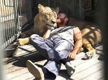 Hayvanat bahçesi sahibi Alexander Pylyshenko, aslanlarla bir yıl aynı kafeste kalacak.