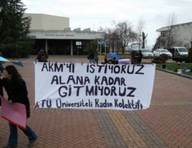 Karadeniz Teknik Üniversitesi (KTÜ) Kadın Kolektifi, Rektörlük önünde Atatürk Kültür Merkezi'nin kendilerine tahsis edilmediği gerekçesiyle çadır açarak eylem yaptı.