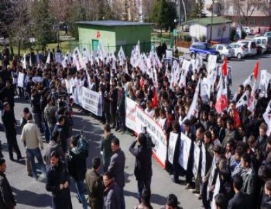 Yürüyüş sırasında gizlenip, il başkanlığı önünde açılan bir pankart dikkatleri çekti. Ellerinde ünlü düşünürlerin resimleri bulunan grup üyeleri Kurtuluş’ta toplanıp, ‘Bilimin ayakları altında kalacaksınız’ pankartı açtı. Kortej oluşturan grup üyeleri buradan AK Parti İl Başkanlığı’na hareket etti. Yol boyunca çeşitli sloganlar atan grup üyeleri, il başkanlığı önüne geldi. Göstericiler il başkanlığı önünde üzerinde Başbakan Recep Tayyip Erdoğan’ın resminin bulunduğu ‘Dünya Tayyip’in boynuzlarında değil’ pankartı açması dikkat çekti. Polis ekipleri dövizle ilgili not alıp, gerekli yerlere bilgi verdi. Grup adına konuşan TGB Genel Başkanı İlker Yücel hükümetin eğitim politikalarını eleştirdi.