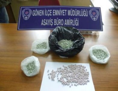 Gönen İlçe Emniyet Müdürlüğü'ne bağlı ekipler tarafından gerçekleştirilen rutin uygulamalar esnasında, durumundan şüphelenilen bir araç durduruldu. Araçta bulunan E.K. isimli şahsın Yalova 1. Sulh Ceza Mahkemesi'nce uyuşturucu madde satın almak suçundan arandığı tespit edildi. Araçta bulunan şahıslardan da şüphelenen ekipler şahısları ve otomobili detaylı inceleme yapmak için emniyete götürdü. Burada araçta yapılan aramalarda, poşet içerisinde piyasa değeri yaklaşık 60 bin lira olan 2 bin 950 adet uyuşturucu hap ele geçirildi. Gözaltına alınan şahıslar, sevk edildikleri mahkeme tarafından tutuklandı .