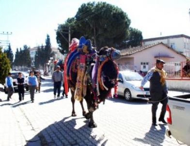 Sahipleri, develeri ilçede gezdirerek heyecanın artmasına da katkıda bulunuyor .