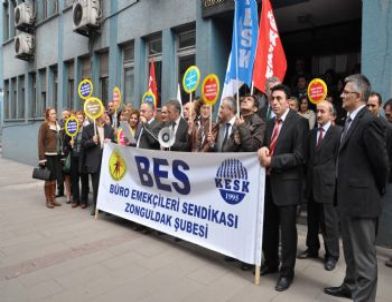 Büro Emekçileri Sendikası (BES) Zonguldak Şubesi Başkanı Hayri Anıl Çetin ve üyeleri, 666 sayılı kanun hükmü kararname ile yaşanan hak kayıplarına karşı eylem yaptı.