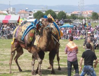 Saruhanlı ilçesinde uzun bir aradan sonra ilk kez deve güreşi düzenlendi.