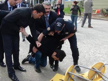 Çıkan kargaşa nedeniyle üniversite yönetimi tarafından kampüse polis çağırıldı. Polis iki grubu da sakinleştirmeye çalıştı. Yaralanan öğrencinin şikayetçi olması üzerine Çevik Kuvvet ekipleri sol görüşlü öğrencileri gözaltına almak istedi. Bu sırada polis ile öğrenciler arasında arbede çıktı. Öğrenciler polise taş, masa sandalyelerle saldırdı. Bu sırada bir polis kolundan yaralandı. Öğrenciler ilk müdahalenin ardından Eğitim Fakültesi binası zemin katında bulunan kantine sığındı.