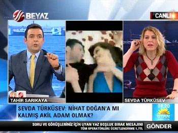 Sevda Türküsev, 'Bu ülkede Nihat Doğan'a mı kalmış akil adam olmak' diye çıkışarak, 'Sen dün türkücüydün, bugün türkücü bile değillsin. Türkücü olduktan sonra birisinin sevgilisi oldu, gündem oldu. Onunla iki - üç sene gündem olduktan sonra sevgili hayatı bitti, sonra birden bire bir düşüş yaşadı, abuk sabuk konuşmaya başladı. Akabinde bir otel odasında basıldı' dedi.