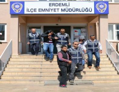 Edinilen bilgiye göre, gece saat 02.30 sıralarında Merkez Mahallesi Abdurrahman Şavk Caddesi üzerinde şüpheli bir şahsın elinde tornavida ve monitörle görülmesi üzerine polis harekete geçti. Erdemli İlçe Emniyet Müdürlüğü ekipleri, elinde tornavida ve bilgisayar monitörüyle kaçmaya çalışan hırsız ile otomobilde onu bekleyen 2 kişiyi yaşanan kovalamacanın ardından kıskıvrak yakaladı. Polis hırsızlık suçundan sabıkalı S.F. (19), S.S. (25) ve M.K.’nın (18)