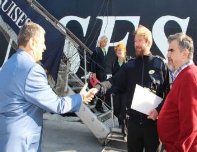 Bartın’a gelen yolcu gemisi, Belediye Başkanı Cemal Akın tarafından karşılandı. Ulf Peter Lindström kaptanlığında 100 mürettebat ve 346 yolcu taşıyan gemi sabah saatlerinde