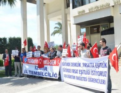 İzmir Şubesi adına basın açıklamasını yapan İl Temsilcisi Nebi Yay, “Açık Öğretim Fakültesi örgün olarak yüksek öğrenim görme imkanı bulunmayanlar için önemli bir imkan sağlamakta, hem okuyup hem de çalışmak durumunda kalan binlerce öğrenci bu imkan sayesinde onlarca yıldır diploma sahibi olmaktadır. Belirtilen kesimin içerisinde kuşkusuz ki kamu hizmeti gören memurlar önemli bir yer tutmaktadır. 9 Ekim 2011 tarihinde yayımlanan Açık öğretim Fakülteleri Öğretim ve Sınav Yönetmeliği değişikliği ile, kredili sisteme geçilmiştir. Yine Anadolu Üniversitesi YÖK’ün tüm üniversitelerde bütünleme sınavı açılsın kararına rağmen bütünleme sınavını kaldırılmıştır. Böylelikle Açık öğretim öğrencileri sınav hakkından yoksun dönem uzatmak zorunda bırakılmakta, zaman ve maddi kayıplara uğramaktadırlar” dedi.