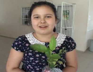 Dedesinin diktiği fidana çok sevindiğini söyleyen 11 yaşındaki Eftelya ve Canan'ın diğer torunları, cezaevi bahçesinde bulunan çiçeklerden toplayarak Canan'a verdi.