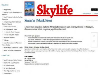 Türk Hava Yolları bünyesindeki Skylife Dergisi, Mart ayında yayınlanan sayısında Selimiye Cami’den, “UNESCO’nun Doğal ve Kültürel Miras Listesi’nde yer alan Selimiye Camii ve Külliyesi, Osmanlı mimarisinin en gözde yapıtlarından biri” diye bahsetti. Türk Hava Yolları bünyesinde çıkan Skylife Dergisi ve Sun Express Hava Yolları bünyesinde çıkan Sun Times, Mart ayı sayılarında Mimar Sinan’ın ‘Ustalık eserim’ dediği Selimiye Cami’ne yer verdi. Okurlarına Türkçe İngilizce olarak seslenen Skylife, Selimiye Cami’nin Osmanlı mimarisinin en gözde yapıtlarından biri olduğu vurgusunu yaparken okurlarına Türkçe ve Almanca olarak seslenen Sun Times ise ‘5 UNESCO Rotası’ yazı dizisinde Selimiye Cami’den bahsetti.