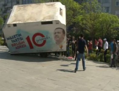 Göstericiler Ak Parti’ye Ait Karavanı Devirdi