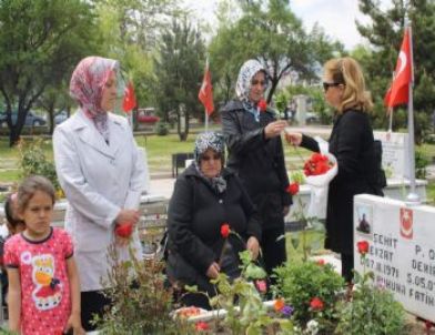 En acı anneler gününü kutlayan şehit anneleri evlatlarını mezarlarını ziyaret etti.