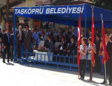 Taşköprü Kaymakamı Ali Yılmaz’ın tören alanındaki iki çelengin kaldırılmasını rica etmesiyle devam etti.