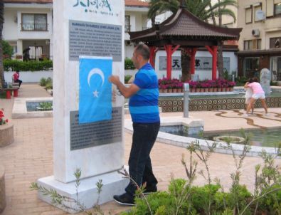 Muğla’nın Marmaris ilçesi ile Çin’in Jinan şehri arasında imzalanan kardeşşehirlik anlaşması sonrası yaptırılan ve açılışı yapılan parka Gökbayrak Dergisi temsilcisi Ahmet Yılmaz parktaki anıtı üzerine Türkmenistan bayrağı asarak Çin ile yapılan kardeşşehirlik anlaşmasını protesto etti.
