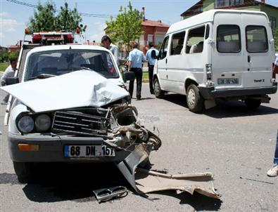 Altındağ (37) idaresindeki 68 DS 435 plakalı minibüs çarpıştı. Kaza sonrası otomobilde bulunan Nisa Çetinkaya (4), Hatice Çetinkaya (9) ile minibüste bulunan Halit Kılıç (18), Figen Seçilmiş (44) ve Zekeriya Duru (29) yaralandı. Yaralılar, olay yerine gelen 112 Acil Yardım ekiplerince ilk müdahaleleri olay yerinde yapıldıktan sonra