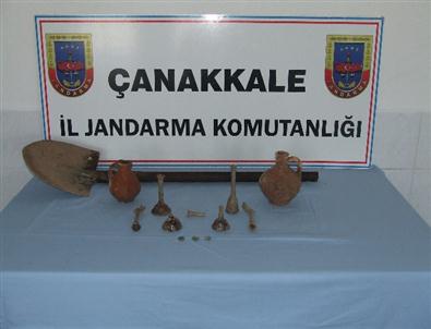 Gelibolu İlçesi Evreşe Beldesi 1 nci derece arkeolojik sit alanı olan Taşağıl Mevkiinde izinsiz kazı yapıldığı ihbarını aldı. Belirtilen bölgede yapılan çalışmada, R.Ç ve K.A isimli şahıslar, izinsiz kazı yaptıkları esnada suçüstü yakalandı. Olay mahallinde 5 adet cam gözyaşı şişesi, 3 adet şarap şişesi, 3 adet sikke ve 1 adet kürek ele geçirildi. Cumhuriyet savcısının talimatı ile gözaltına alınan şüpheli R.Ç ve K.A, işlemlerinin tamamlanmasını müteakip tutuklama talebiyle sevk edildiği