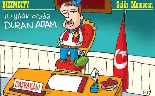 'Gezi'olaylarının pasif eylemlere dönüştüğü şu günlerde öne çıkan'duran adam'eylemini farklı yorumlayan Salih Memecan, Başbakan Erdoğan'ı'Duran adam'yaptı.
