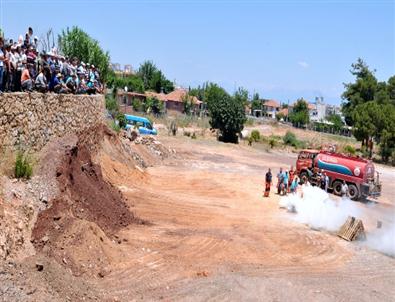 Yemeğin ardından, Kepez Belediyesi Arama Kurtarma Sorumlusu Şaban Kibar, asfaltlama çalışmaları sırasında yaşanabilecek olası yangınlara müdahale konusunda çalışanları tatbikatla bilgilendirdi.