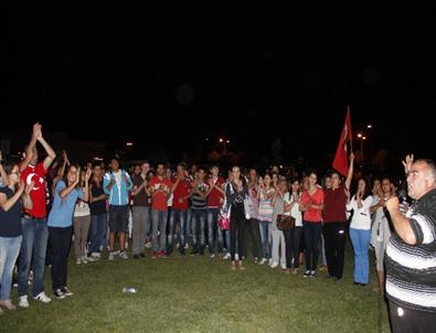 Tüm yurtta olduğu gibi Selçuk'ta da Gezi Parkı eylemleri devam ediyor. Dün İstasyon Meydanını dolduran ve daha sonra Atatürk Anıtı önüne yürüyen Selçuklular, gece de ilçe Otogarı karşısındaki yeşil alanda bir araya geldiler ve oturma eylemi başlattılar. Ellerindeki Türk Bayrakları ve meşalelerle alanı dolduran bir grup gence, vatandaşlar da destek verdi. Burada yaklaşık bir saat oturan ve daha sonra halaylar çekerek İstanbul Gezi Parkı'nda yaşanan olayları protesto eden gençler, hükümet karşıtı sloganlar da attılar.
