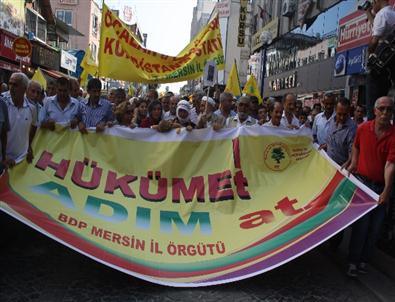 BDP İçel Milletvekili Ertuğrul Kürkçü ve Akdeniz Belediye Başkanı Fazıl Türk'ün de katıldığı yürüyüşte, 'hükümet adım at' yazılı pankart taşınırken, zaman zaman İmralı'da bulunan terör örgütü ele başı Abdullah Öcalan lehinde sloganlar atıldı. Kalabalık, sloganlar eşliğinde Silifke Caddesi üzerinden Atatürk Caddesi'ne çıkarak Büyükşehir Belediye binası önünde bir araya geldi.