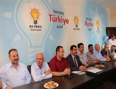 AK Parti Aydın Milletvekili Mehmet Erdem'in, AK Parti Merkez İlçe Teşkilatı’nda düzenlediği basın toplantısına, Merkez İlçe Başkanı Gökhan Ökten ile yönetim kurulu üyeleri de katıldı.