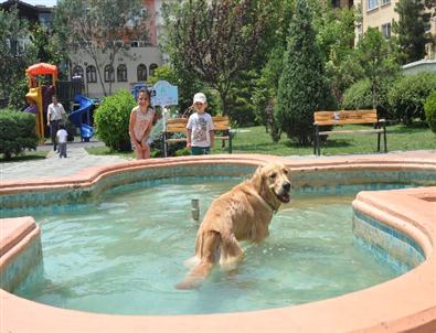 Sıcak havadan bunalan ‘Leon’ isimli Golden cinsi bir köpek, serinlemek için İstiklal mahallesi Eti parkında bulunan süs havuzuna girdi. Havuz içinde oyun oynayan Leon kısa zamanda çevrede bulunan çocukların ilgisini çekmeyi başardı. Havuz başına gelen çocuklar serinleyen Leon’u bir süre sevdi. Daha sonra havuzdan çıkan Leon yeniden sahibinin yanına koştu.