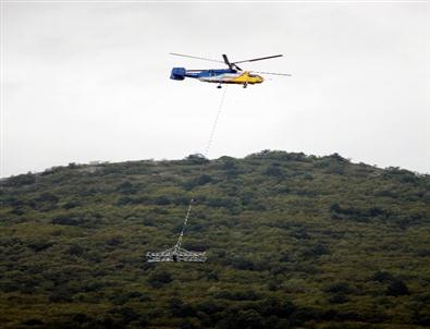 Bursa'nın Yeni Teleferiği'nin Direkleri Helikopterle Dikildi