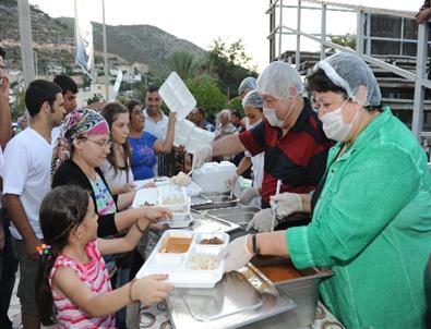 Başkan Akaydın daha sonra eşi Gülseli Akaydın ile birlikte Finike’de kurulan 2 bin 500 kişilik iftar sofrasında vatandaşlara yemek dağıttı.