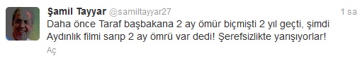 Taraf 'ın o dönemde yaptığı haberi hatırlatan Tayyar, “Daha önce Taraf Başbakan'a 2 ay ömür biçmişti, 2 yıl geçti şimdi Aydınlık filmi sarıp 2 ay ömrü var dedi! Şerefsizlikte yarışıyorlar!” diyerek tartışmanın fitili ateşledi. Tayyar 'ın bu sözlerine cevap ise Taraf yazarı Baransu 'dan geldi. Tayyar 'ın yazdıklarına bir düzelteme getirerek AK Partili vekile tepki gösteren Baransu, “Taraf değil Stratfor ömür biçmişti. Bilgiyi Başbakanın halen danışmanı olan kişi vermişti. Şerefsiz danışman mı demek istedin?” diye yazdı.