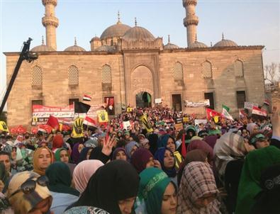 Özgür-Der ve İnsani Yardım Vakfı (İHH) gibi kuruluşların organize ettiği protesto gösterisi Eminönü Yeni Camii önünde yapıldı. İkindi sonrasında cami önünde toplanan kalabalık, devrik lider Mursi'nin posterlerini ve Mısır bayrakları taşıdı. Sık sık tekbir getirerek Mısır'da darbecilere karşı direnenlere destek veren göstericiler, sıcak havaya rağmen cami önündeki meydanı doldurdu.