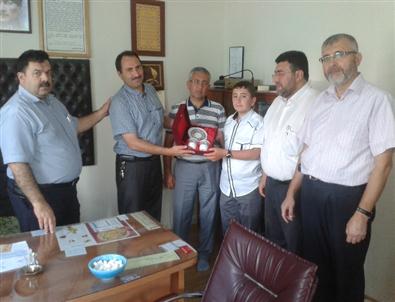 Kütahya Bölge Yatılı Erkek Kur'an Kursu'nda hafızlık eğtimini 8 ay gibi kısa bir sürede tamamlayarak büyük bir başarıya imza atan 15 yaşındaki Recep Göner'in babası Ömer Göner, kursun öğretmenlerine teşekkür ziyaretinde bulundu.