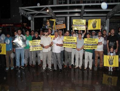 Grup adına açıklama yapan Memur Sen Samsun Şube Başkanı Nejdet Güneysu, "Zulmü ve diktayı reddeden ve günlerce meydanlarda nöbet tutan Mısır halkını selamliyoruz ve aziz Mısır'ın bütün evlatlarına diyoruz ki, meydanlara ve alanlara inmeniz insanlığınızın gereğidir. Halkına cebr ve şiddet kullanan her türlü rejim alçaktır ve onurlu vicdanlar tarafından reddedilmelidir. Darbe karşıtlarına yapılan saldırılarda 5 bin ölü, 10 bin yaralı var. Adeviyye Meydanı'ndaki Sahra Hastanesi yaralılara müdahale de yetersiz kaldı ve bu yüzden ölü sayısı arttı. Suriye'de 100 bin insanını katleden zalim Esad çocuk ve kadınları kimyasal silahlarla katletmeye devam ediyor" dedi.