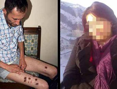 'Eşim bir defasında iki fincanda kahve yaptı getirdi, ben içtim o içmedi. Neden içmediğini sordum,'canım istemiyor'dedi. 15-20 dakika sonra kendimden geçmişim. Sadece hatırladığım vücudumda acı hissettiğimdi. Eşim kahveme zehir koyup, beni bayılttıktan sonra vücudumda sigara söndürmüş. Bacaklarımda sigara izleri var. Kollarımda ve omzumda çiziklere, kesiklere neden olmuş. Parmağımda 12 gramlık altın yüzüğüm vardı çıkmıyordu, kestirmemiz lazımdı. Zorlayarak, derimi soyarak yüzüğü çıkarmış. Cebimdeki bin 300 lirayı almış.'
