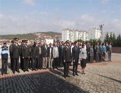 Atatürk büstüne çelenk sunulması ile gerçekleştirilen tören sonrası Kaymakam Hakan Erdoğan Yavuz ve beraberindeki heyet ilçe jandarma bölük komutanlığında birlikte sohbet ettiler.